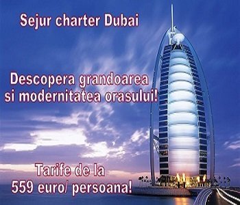 | SERVICII INCLUSE: – transport avion, zbor direct Bucuresti – Dubai si retur, compania WIZZAIR – un bagaj de cala (o singura piesa) cu greutatea maxima de 32 kg – un bagaj de mana – check-in la aeroport gratuit – 7 nopti cazare cu mic dejun – transfer aeroport – hotel – aeroport – asistenta turistica in limba romana NU SUNT INCLUSE: |